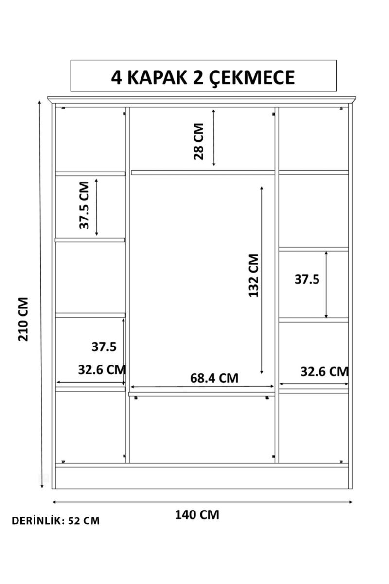 • Derinlik: Dıştan 54 cm, net içten 50 cm